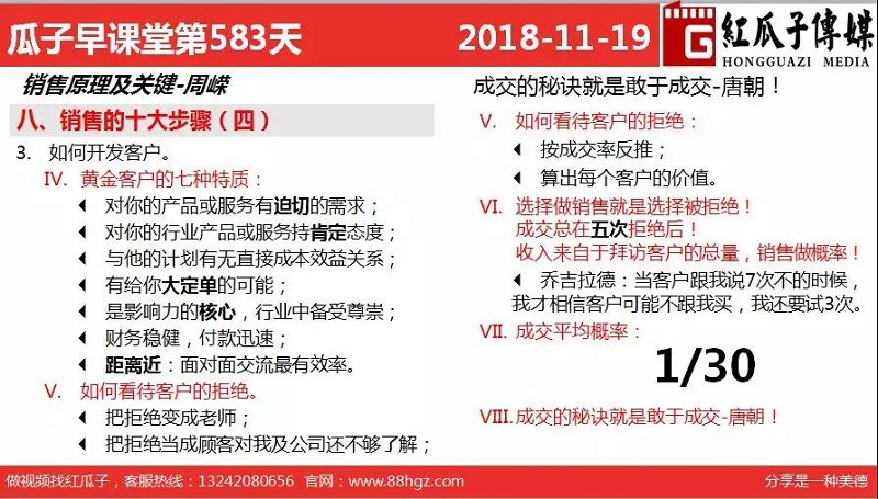 红瓜子传媒首页>相关资讯>最新动态>瓜瓜早课堂第583期-销售的十大步骤4