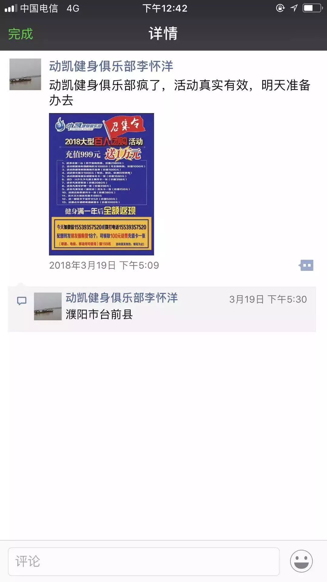 推广效果:到店询问成交数量为100%,业绩是之前的二十倍。一天办了130张健身卡,两天赶超一个月的营业额。